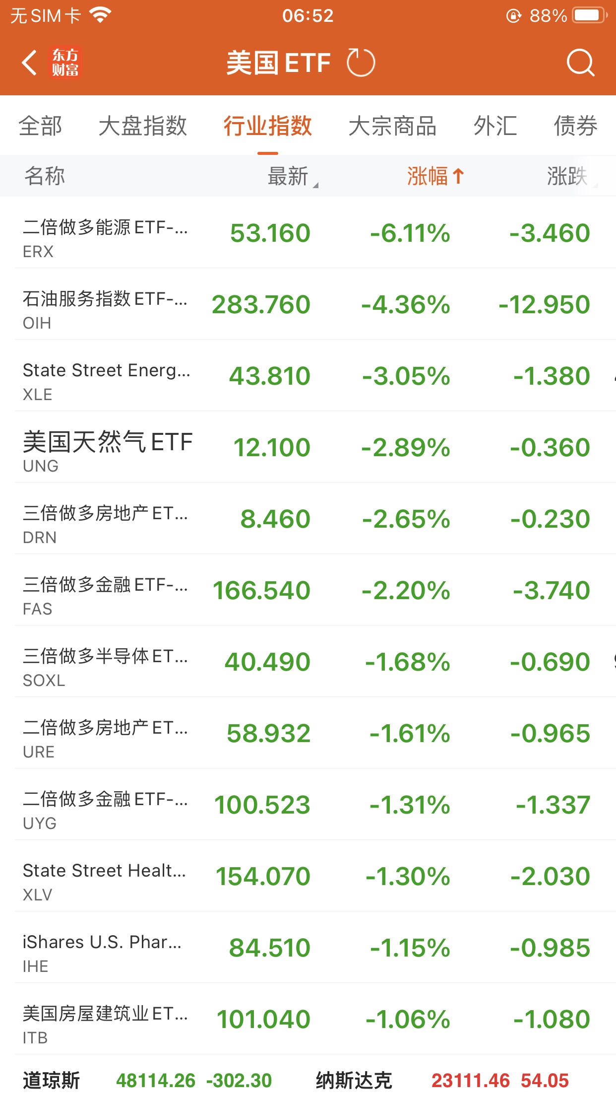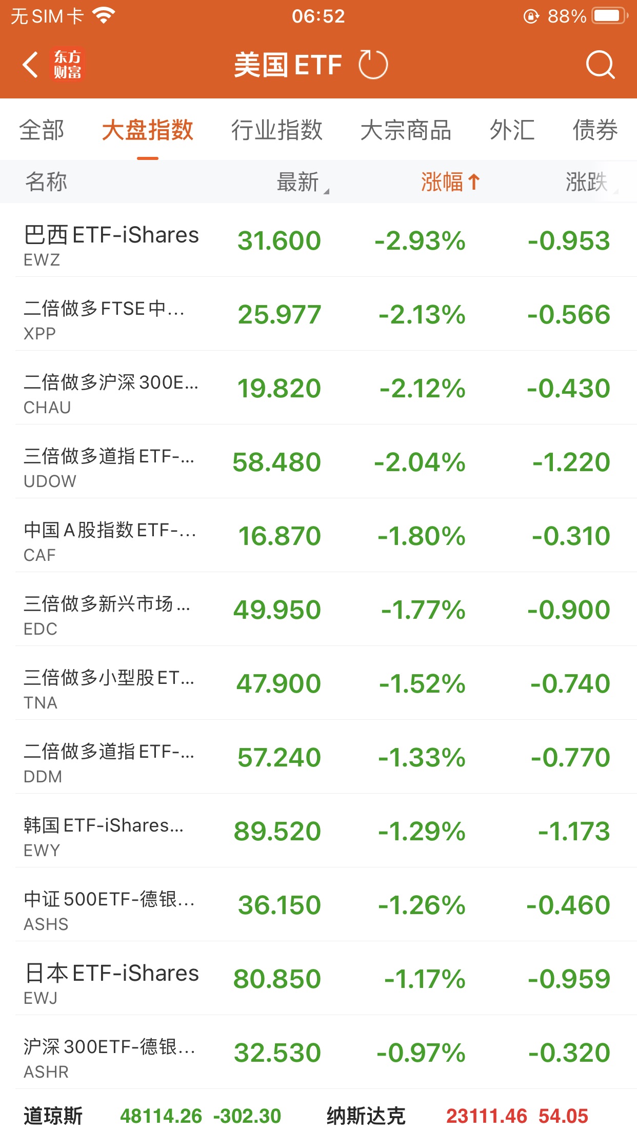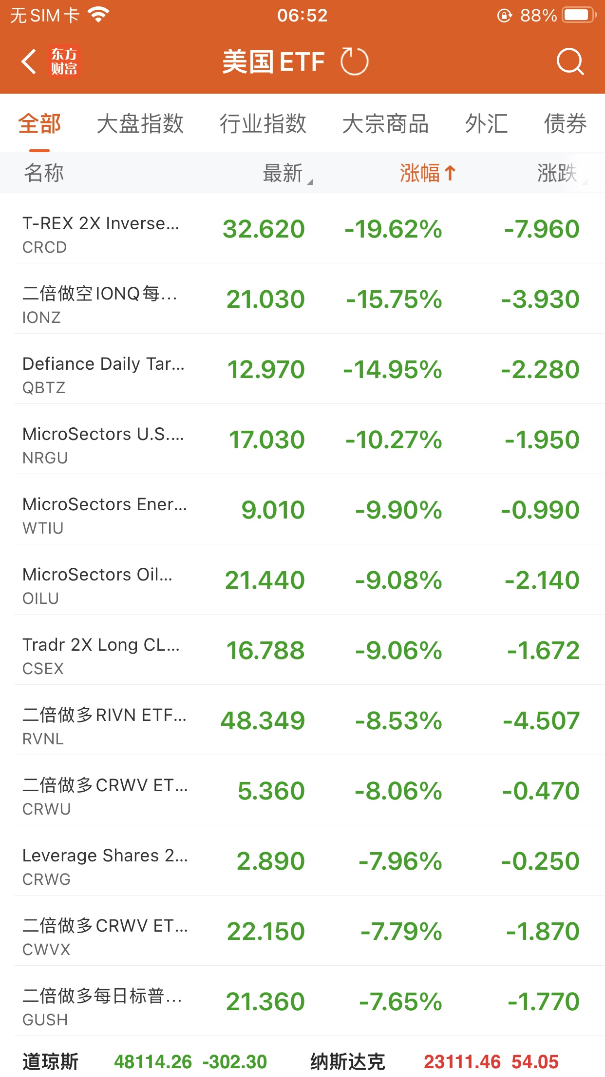 三倍做多道指ETF-ProShares (UDOW.US) 跌2.04%,成交额3.34亿美元。
