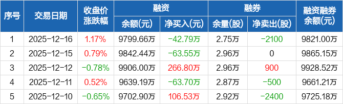 江河集团:融资净偿还42.79万元,融资余额9799.66万元(12-16)