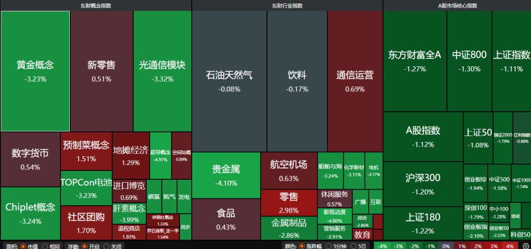 昨日三大指数集体回调,沪指跌1.11%,收报3824.81点;深证成指跌1.51%,收报12914.67点;创业板指跌2.10%,收报3071.76点。沪深两市成交额17242亿。行业板块呈现普跌态势,贵金属、船舶制造、风电设备、有色金属、光伏设备、文化传媒、采掘行业跌幅居前,商业百货板块逆市走强。