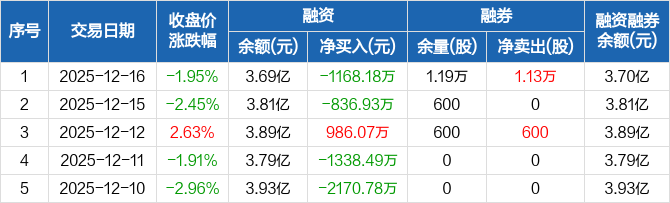 潍柴重机:融资净偿还1168.18万元,融资余额3.69亿元(12-16)