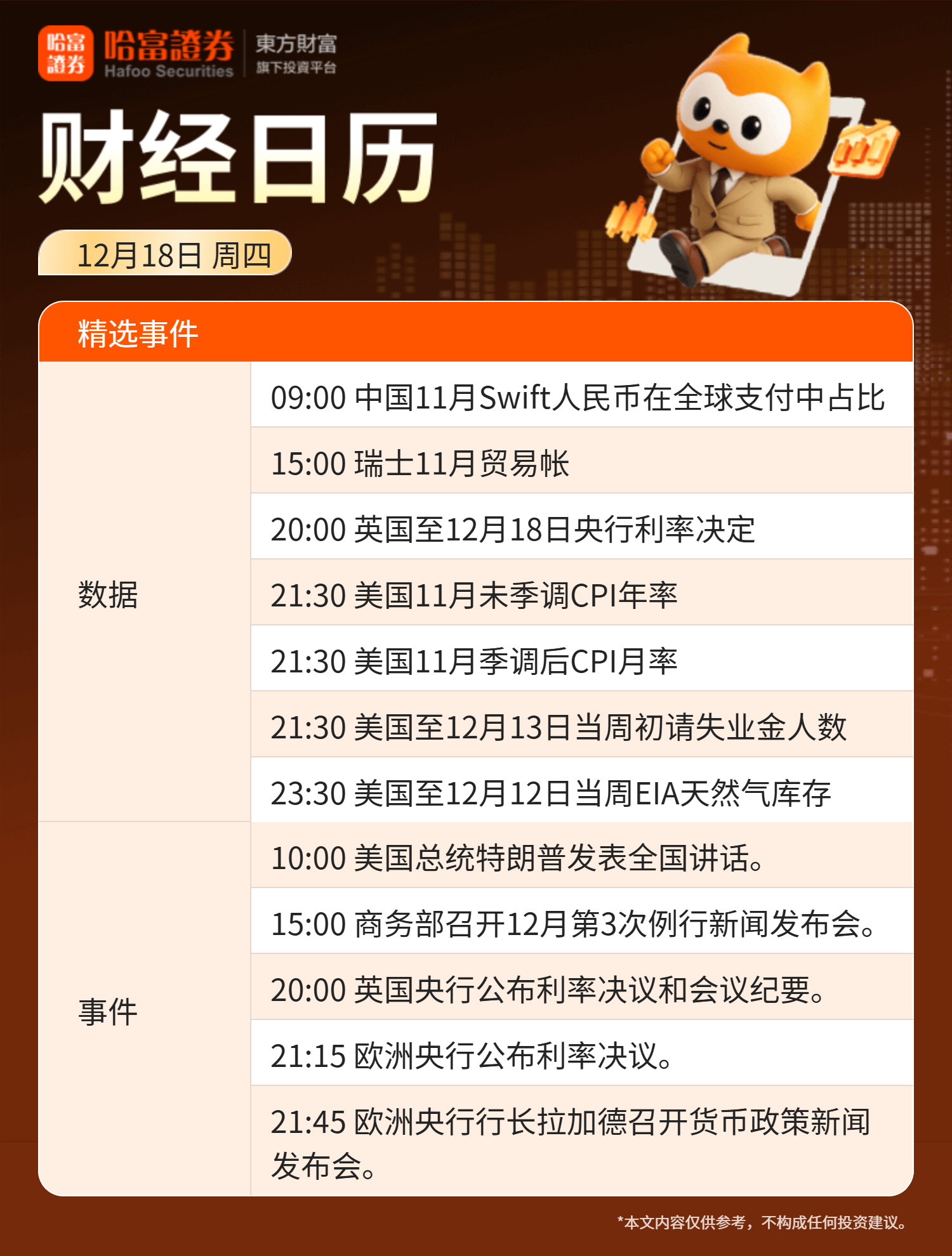 摘要:今日上午10点全美讲话!特朗普或预告明年政策;甲骨文拖累美股,黄金、油气股逆市上扬,美光科技业绩爆表盘后飙升;今晚美国11月CPI重磅出炉。
