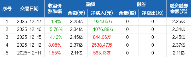 新迅达:融资净偿还934.65万元,融资余额2.25亿元(12-17)