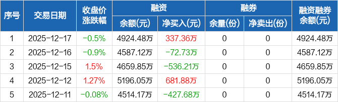 航空航天ETF:融资净买入337.36万元,融资余额4924.48万元(12-17)