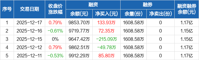 现金流ETF:融资净买入133.93万元,融资余额9853.7万元(12-17)