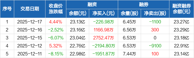 罗博特科:融资净偿还226.98万元,融资余额23.13亿元(12-17)