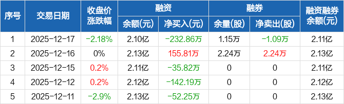 安凯客车:融资净偿还232.86万元,融资余额2.1亿元(12-17)