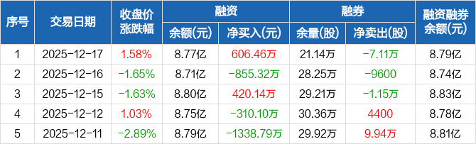 东方国信:融资净买入606.46万元,融资余额8.77亿元(12-17)