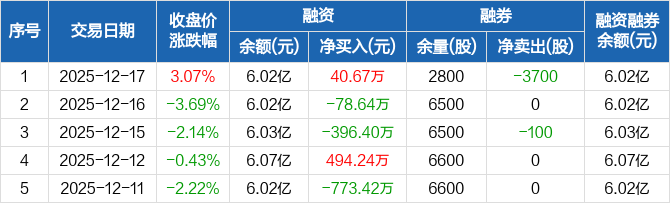光华科技:融资净买入40.67万元,融资余额6.02亿元(12-17)