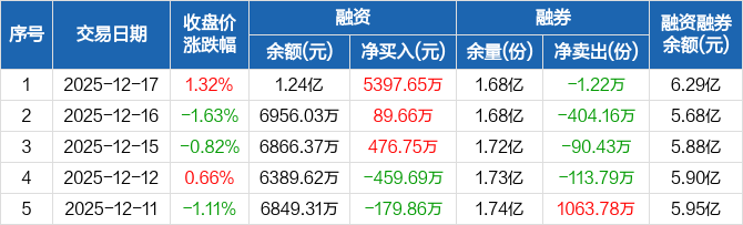 融资方面,当日融资买入7462.22万元,融资偿还2064.57万元,融资净买入5397.65万元,连续3日净买入累计5964.06万元。融券方面,融券卖出157.08万份,融券偿还158.3万份,融券余量1.68亿份,融券余额5.05亿元。融资融券余额合计6.29亿元。