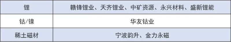 三是稀土磁材方面,国内生产指标管控导致供应收紧,而下游新能源汽车、风电、机器人等领域需求保持韧性,供需紧平衡支撑价格强势。受益标的包括宁波韵升、金力永磁等。