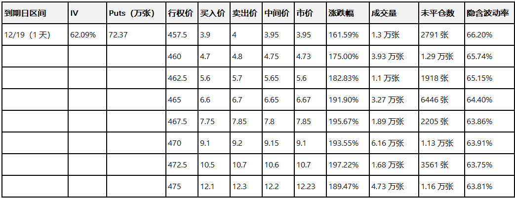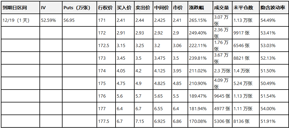 观察本周五行权的PUT单,多张涨幅翻倍。