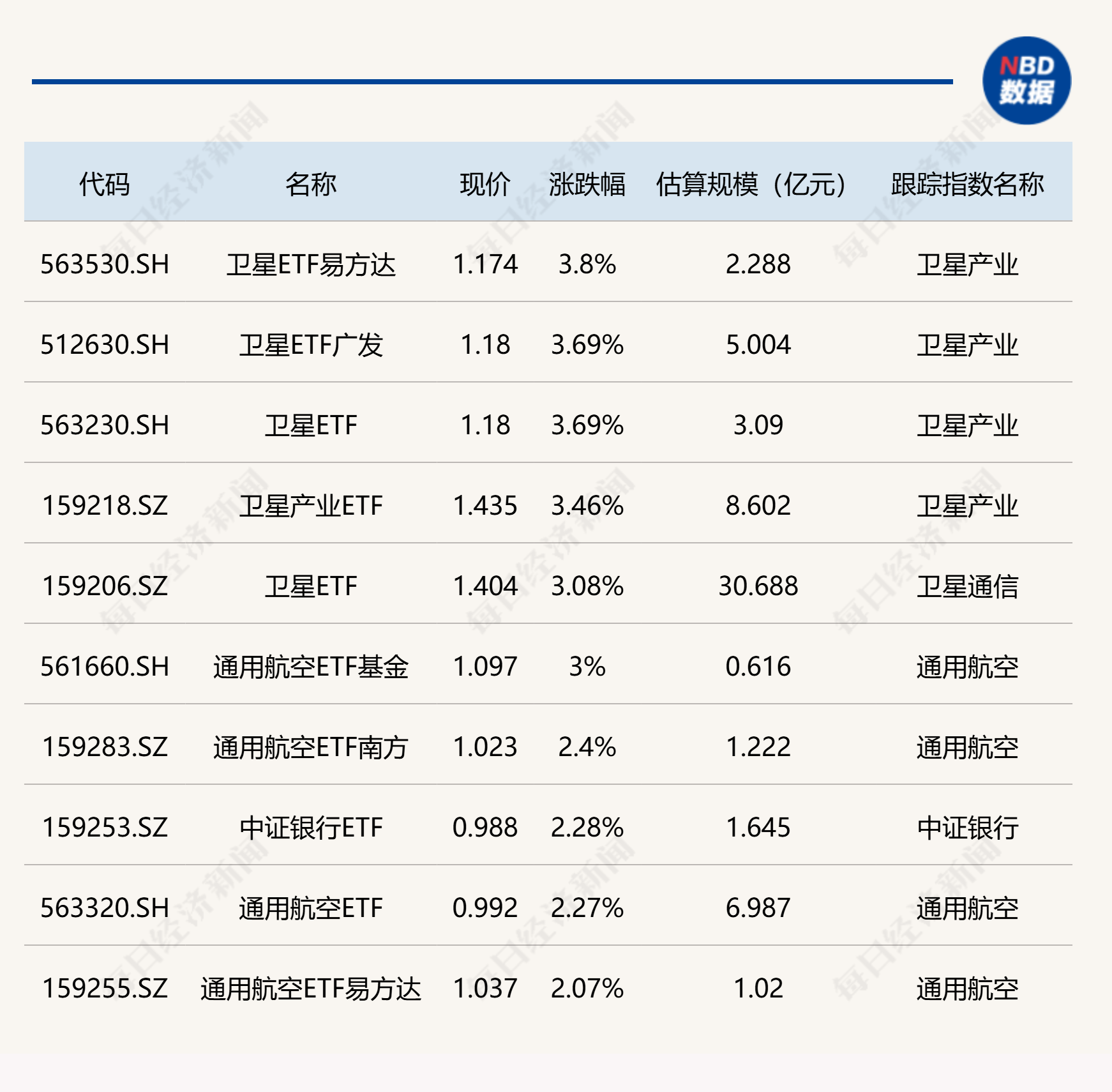ETF涨跌幅方面,卫星相关ETF涨超3%。