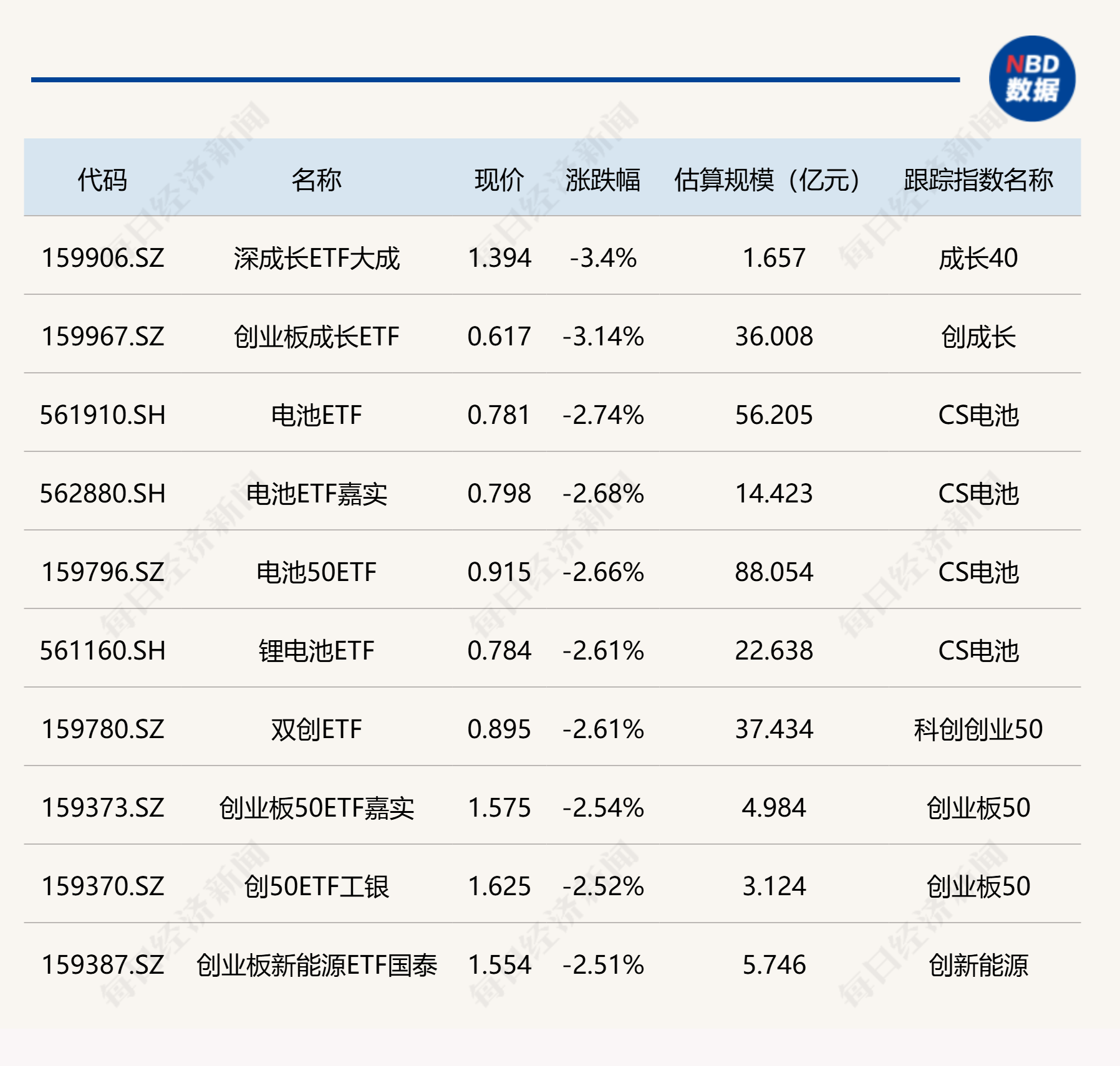 ETF今日收评 | 卫星相关ETF涨超3%,电池相关ETF跌超2%