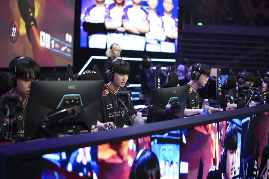 上海电竞大师赛守望先锋半决赛,t1战队正在比赛中。李铭珅摄