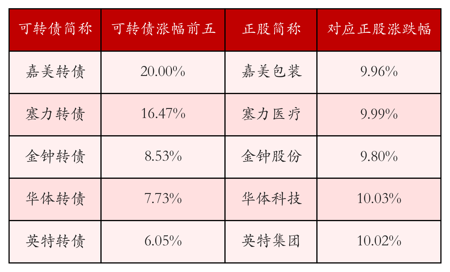 南财智讯12月18日电,南财金融终端盘后数据显示,债市方面,中证转债指数收涨0.06%,报483.43,成交额为639.06亿元。可转债方面,今日共成交384只可转债,其中253只收涨,0只收平,131只收跌。具体来看,21只可转债涨幅超过2%。其中嘉美转债(127042)涨20.0%,塞力转债(113601)涨16.47%,金钟转债(123230)涨8.53%。今日有17只可转债跌幅超2%,大中转债(127070)跌6.23%,能辉转债(123185)跌4.48%,环旭转债(113045)跌4.47%。存在交易量的可转债所对应的正股中,216只收涨,11只收平,157只收跌。具体来看,19只可转债对应正股涨幅超过5%,其中,漱玉平民(301017)涨停,收涨20.03%。同时所对应的可转债:漱玉转债(123172)同涨5.23%。今日有3只可转债对应正股跌幅超过5%,没有正股跌停。