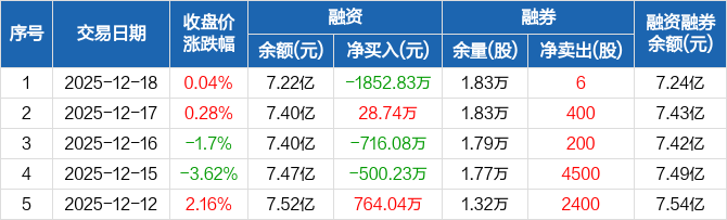 思瑞浦:融资净偿还1852.83万元,融资余额7.22亿元(12-18)
