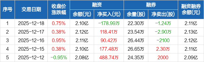 桃李面包:融资净偿还178.99万元,融资余额2.1亿元(12-18)