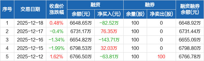 技源集团:融资净偿还82.52万元,融资余额6648.65万元(12-18)