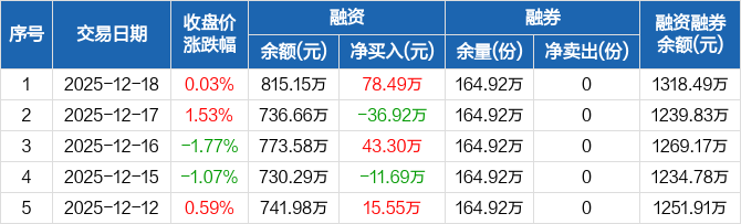 中证1000ETF易方达:融资净买入78.49万元,融资余额815.15万元(12-18)
