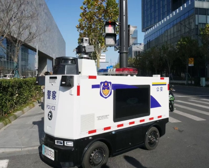 图为在张江试点应用的警用无人驾驶装备。摄影记者张龙