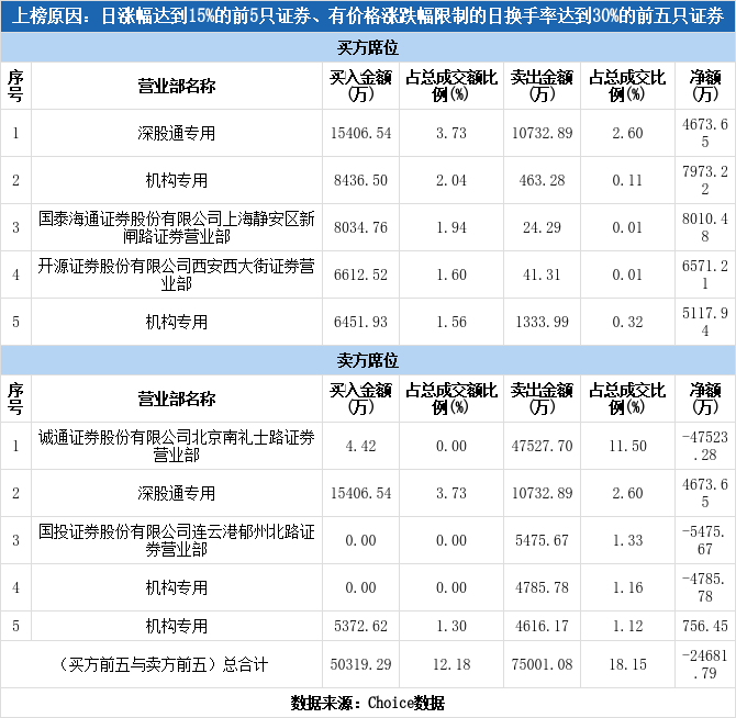多主力现身龙虎榜,航天智造上涨16.30%(12-19)