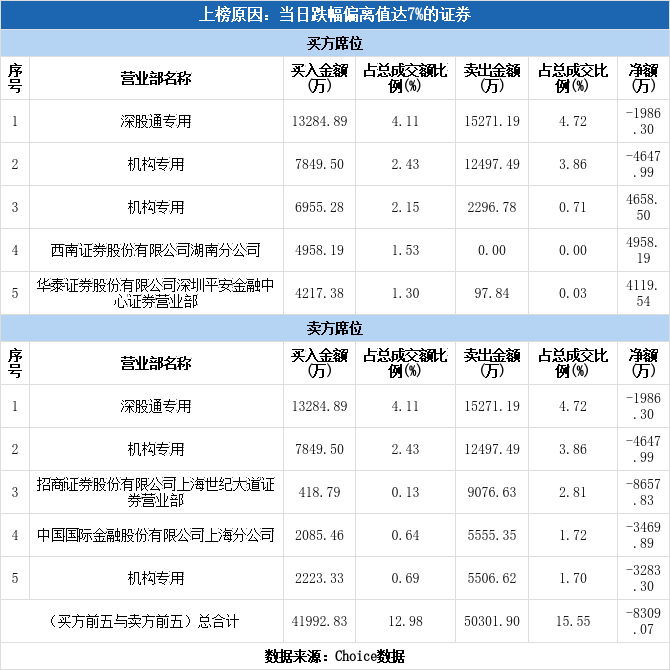 多主力现身龙虎榜,德明利下跌7.01%(12-19)