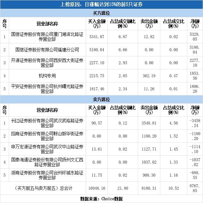 深交所2025年12月19日交易公开信息显示,理工光科因属于日涨幅达到15%的前5只证券而登上龙虎榜。理工光科当日报收39.34元,涨跌幅为20.01%,换手率17.82%,振幅22.18%,成交额7.78亿元。