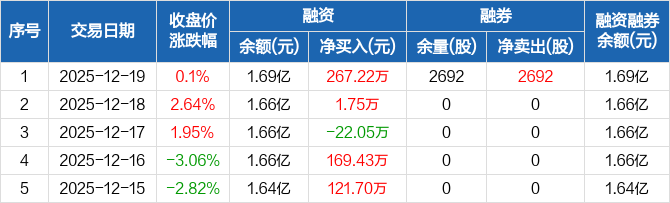 凯立新材:融资净买入267.22万元,融资余额1.69亿元(12-19)