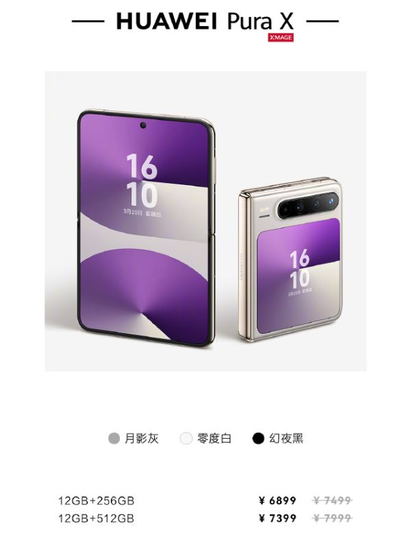 12月20日,华为终端宣布,华为阔折叠手机Pura X开启降价优惠,标准版优惠600元,优惠后6899元起,典藏版优惠800元,优惠后8199元起。