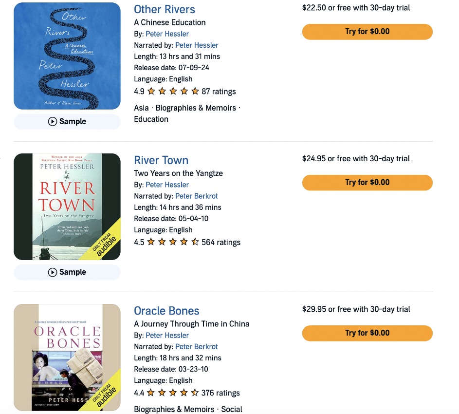 何伟(Peter Hessler)在Audible的部分音频,截图自Audible官网