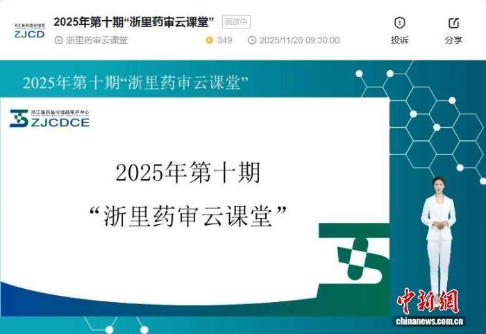 浙江省药品化妆品审评中心打造“浙里药审云课堂”,以线上“云课堂”方式为企业提供技术培训和指导。“浙里药审云课堂”截图