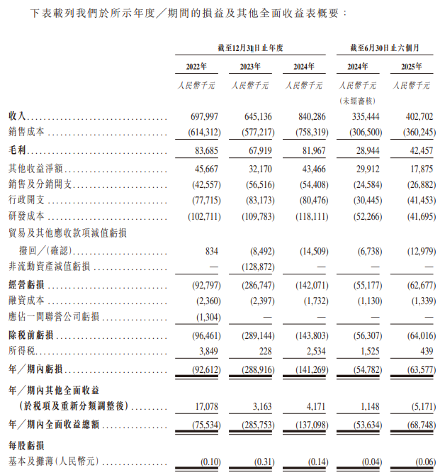 最新业绩方面,2025年上半年,华大北斗营收为4亿余元,较上年同期的3.35亿元增长19.4%;毛利为4246万元,经营亏损为6268万元,期内亏损为6358万元。华大北斗表示,截至2025年6月30日止六个月,公司的收入及毛利较2024年同期均有所增长,毛利率显著改善。该改善主要由产品组合变动所驱动,主要原因是毛利率相对较高的GNSS芯片及模组业务收入占比增加。公司预期于2025年全年将录得净亏损增加,因为尽管公司的净亏损率预计将按年收窄,但毛利及其他收入预计未能完全抵销总开支。这主要归因于开支增加、持续的研发投入以及按权益结算以股份付款的开支增加,以及研发开支及销售及分销开支占收入的比率预计于2025年将会上升。