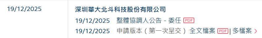 港交所官网信息显示,12月19日,深圳华大北斗科技股份有限公司(以下简称华大北斗)更新招股书,招银国际与平安证券(香港)担任联席保荐人。公司若挂牌,有望成为港股“北斗芯片第一股”。