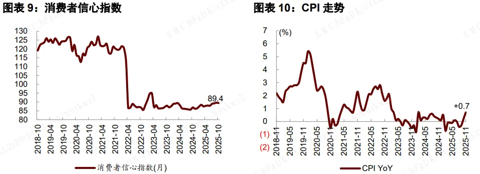 消费景气线索增多,上海迪士尼拥挤度高位震荡,电影票房同比仍较强;奶粉价格同比增长,茅台批价环比反弹。中央经济工作会议提出“深入实施提振消费专项行动”,展望2026,消费在供给端和需求端的政策空间存在超预期可能。