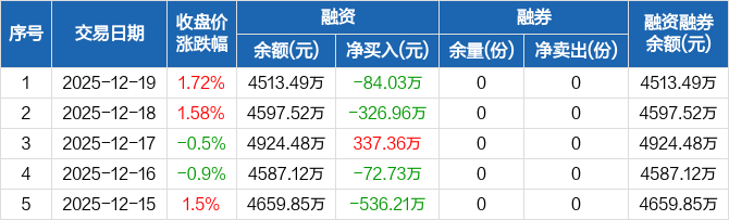 航空航天ETF:融资净偿还84.03万元,融资余额4513.49万元(12-19)