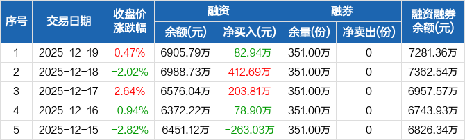 消费电子ETF:融资净偿还82.94万元,融资余额6905.79万元(12-19)
