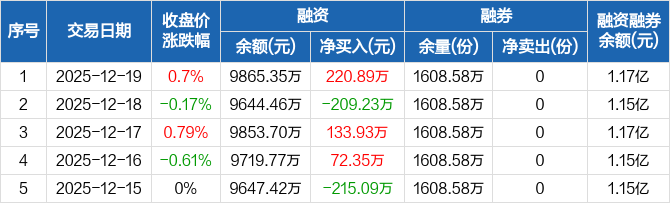 现金流ETF:融资净买入220.89万元,融资余额9865.35万元(12-19)