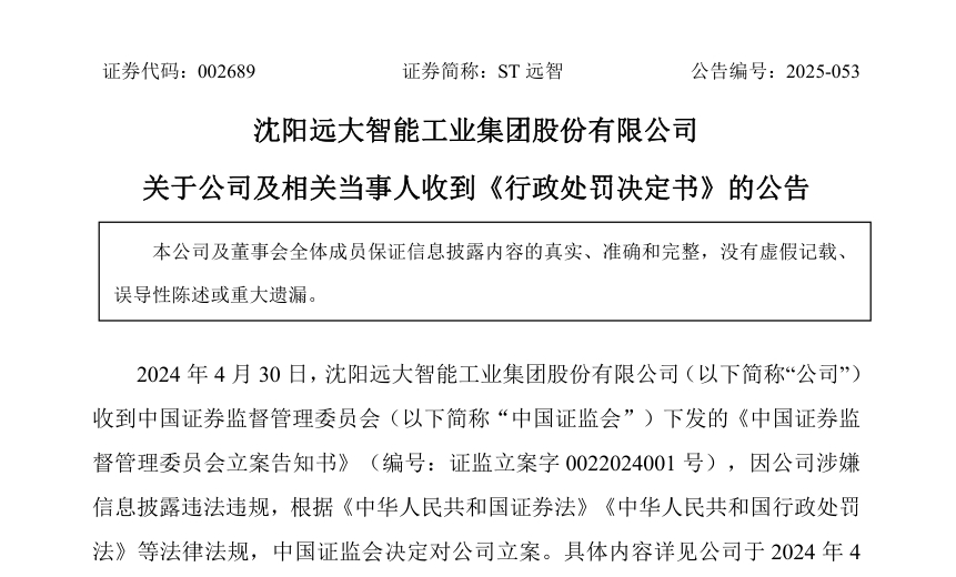 福能东方表示,大宇精雕已于2024年一季度完成股权出售,不再纳入合并报表范围,不影响公司现有主营业务正常运营。公司已就该事项致歉,并承诺加强内控管理与合规信息披露。此次事件预计导致公司股票被实施其他风险警示,但未触及重大违法强制退市情形。
