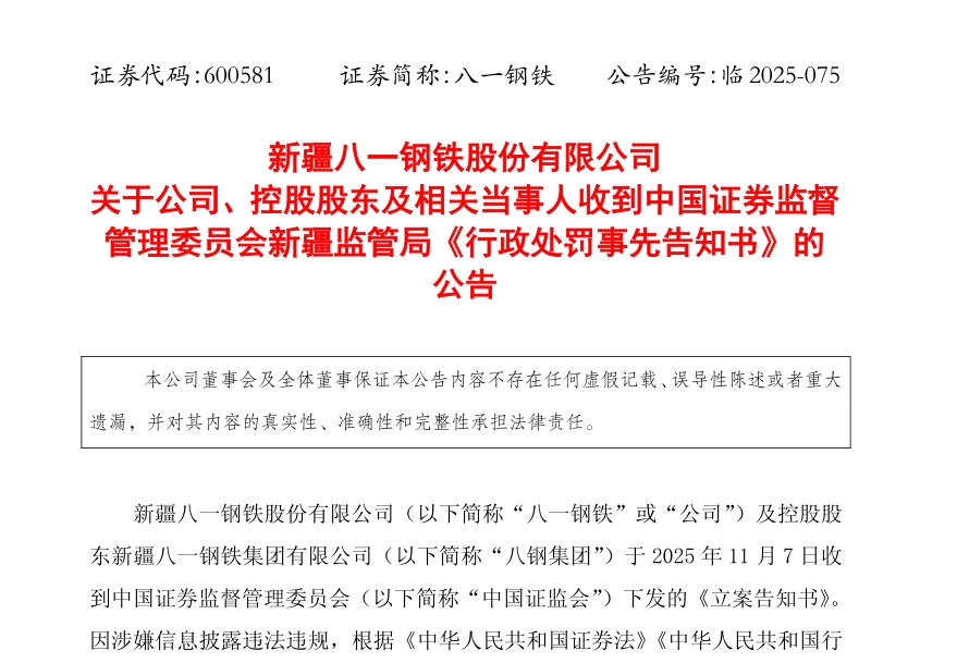 具体来看,八一钢铁因未按规定披露关联交易事项被罚。经查明,2022年至2024年期间,八一钢铁与八钢集团及其关联方发生多笔非经营性资金往来关联交易,累计金额超百亿元。根据《中华人民共和国证券法》相关规定,上述关联交易属于应当及时披露并纳入定期报告的内容。然而,八一钢铁既未及时履行信息披露义务,也未在《2022年年度报告》《2023年年度报告》和《2024年年度报告》中予以披露,导致定期报告存在重大遗漏,构成信息披露违法。