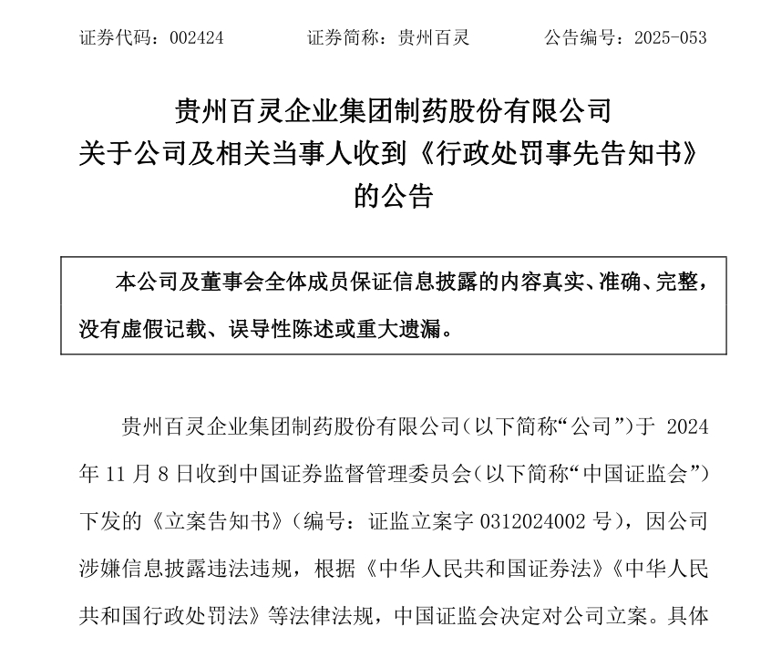 记者注意到,贵州百灵作为贵州当地的明星企业,连续多年入选中国制药工业百强、贵州企业“双百强”等榜单。此次贵州百灵被重罚,体现了监管部门对证券违法行为“零容忍”的鲜明态度。