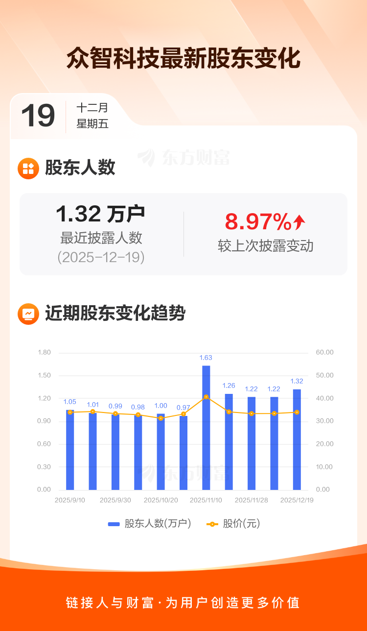 众智科技:截至12月19日最新股东户数1.32万户,较上期增加8.97%