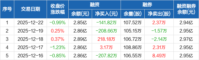 平煤股份:融资净偿还141.82万元,融资余额2.85亿元(12-22)
