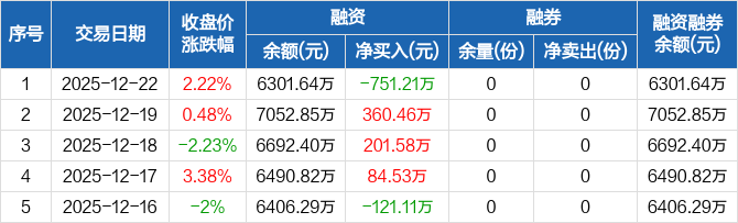 创业板ETF广发:融资净偿还751.21万元,融资余额6301.64万元(12-22)