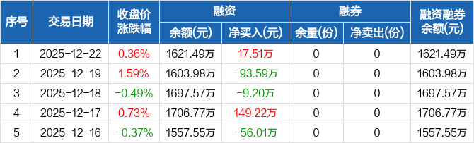 农业ETF:融资净买入17.51万元,融资余额1621.49万元(12-22)
