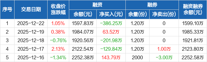 A50ETF:融资净偿还386.25万元,融资余额1597.83万元(12-22)