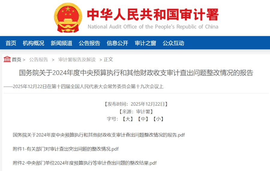 12月22日下午,十四届全国人大常委会第十九次会议听取国务院关于2024年度中央预算执行和其他财政收支审计查出问题整改情况的报告。