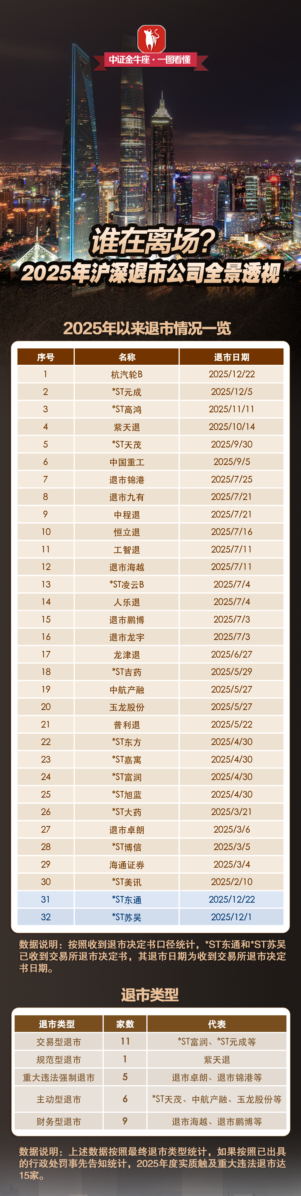【一图看懂】2025年沪深退市全景:谁在离场?