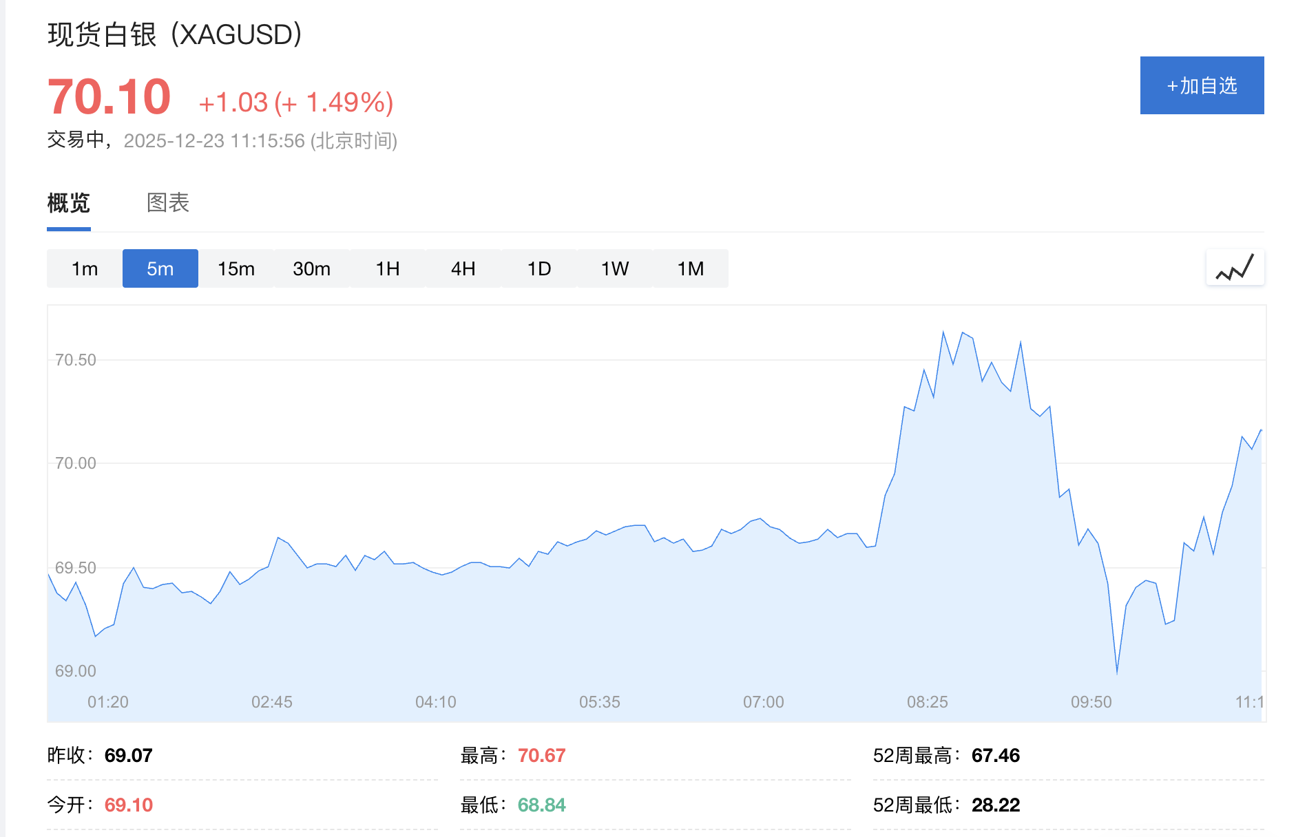 纽约时间周二上午,现货白银一度上涨2.4%,首次突破每盎司70美元。