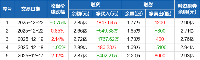 东鹏饮料:融资净买入1847.64万元,融资余额2.85亿元(12-23)