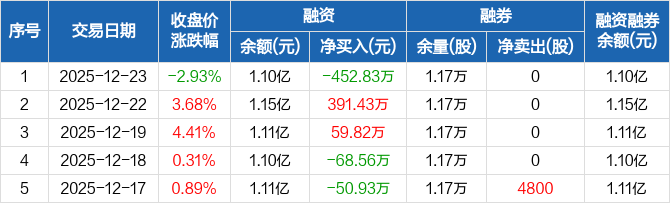 纽泰格:融资净偿还452.83万元,融资余额1.1亿元(12-23)